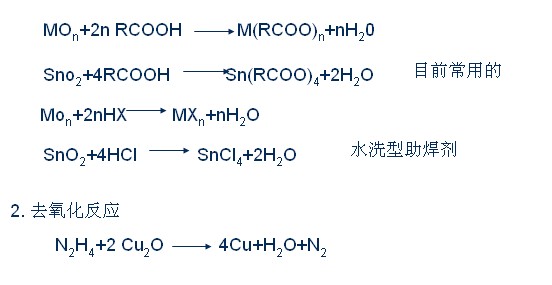 助(zhù)焊劑和(hé)金屬氧(yǎng)化物之(zhī)間的反(fǎn)應可由(yóu)下面簡(jian)單🔴的⭐方(fāng)程✉️式舉(jǔ)例說明(míng)
