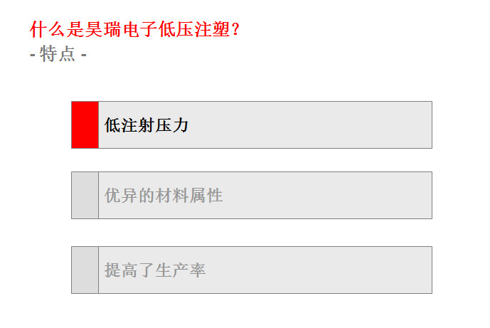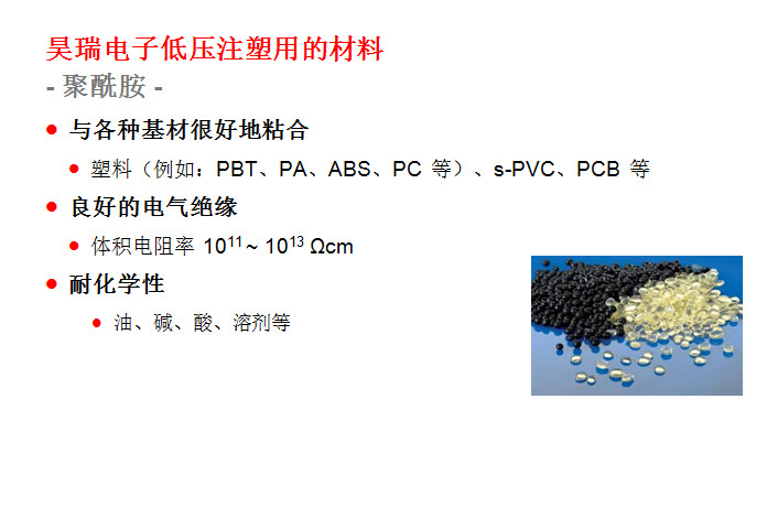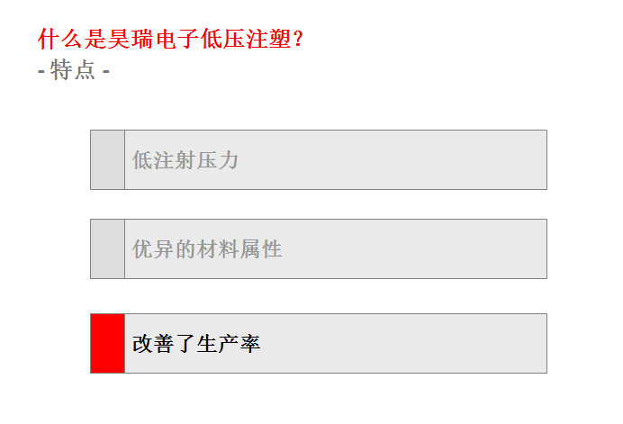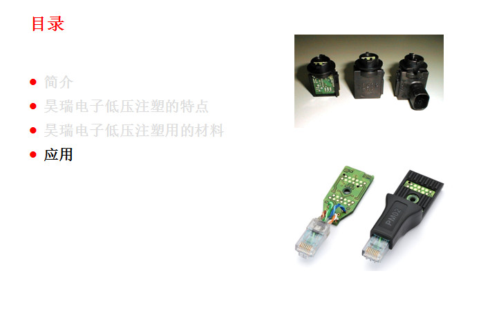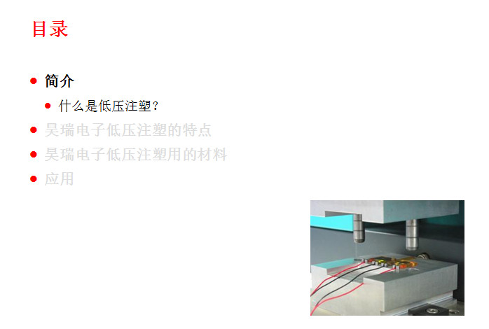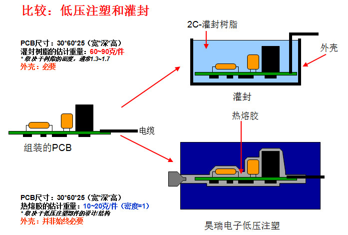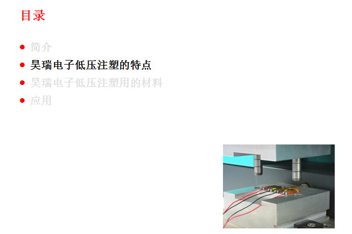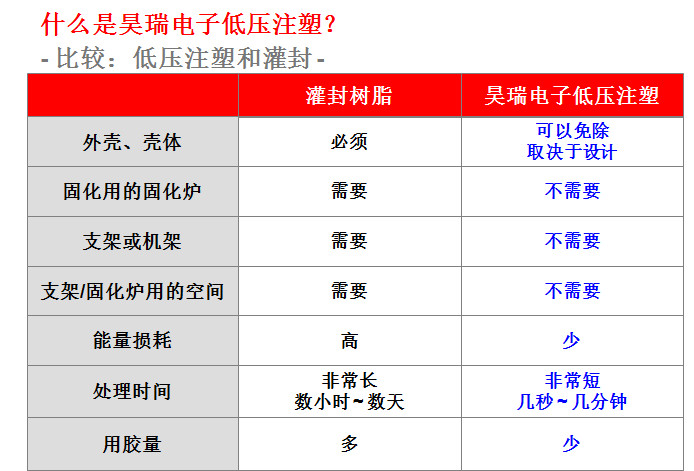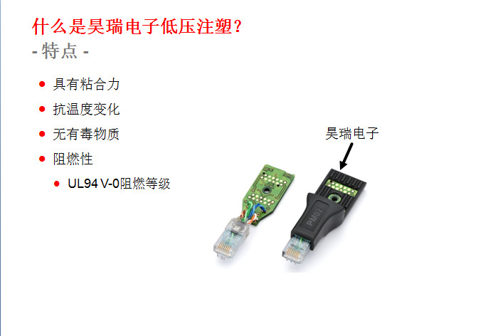 此項工藝(yì)起源于歐洲的(de)汽車工業,到目(mu)前爲止在歐美(měi)🌈、日韓等的汽車(che)工業領域和電(diàn)子電氣領域已(yi)經成功應用了(le)十幾🈲年。這(zhe)種低壓注射成(cheng)型技術的優勢(shi)表現在:①提升終(zhōng)端産品㊙️的性能(neng);②大幅減少新産(chǎn)品的研制成本(běn),縮短産品開🙇♀️發(fā)周期,同時可🏃🏻以(yǐ)大幅度的提升(shēng)生産效率;③總生(shēng)産成⚽本的節約(yue)。下面🚶♀️昊瑞電子(zi)就爲您圖文詳(xiang)解一下: