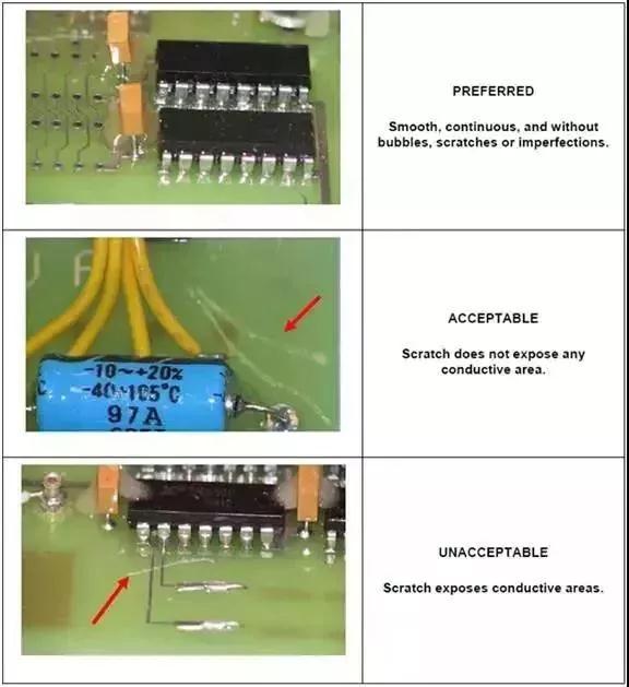 由于多方面(mian)的原因導緻(zhi)電路闆在塗(tu)覆時出現一(yī)種或者多種(zhǒng)覆蓋缺陷,要(yao)具體問題具(ju)體分析,逐一(yī)解決。