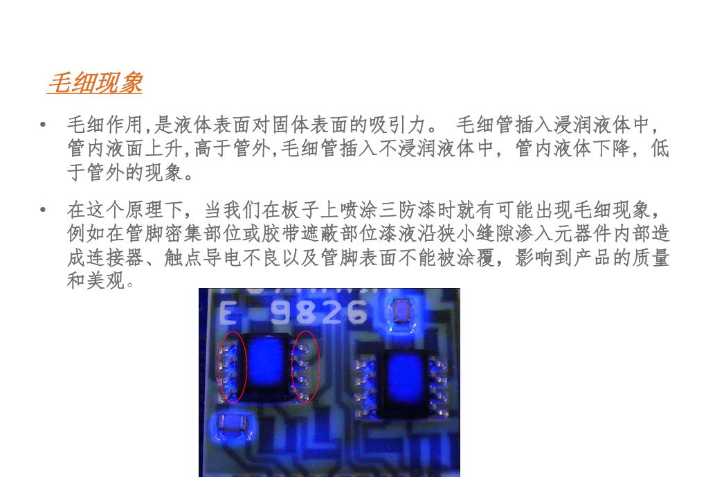 三防漆産(chǎn)生毛細現象(xiang)來自于以下(xià)幾個方面: