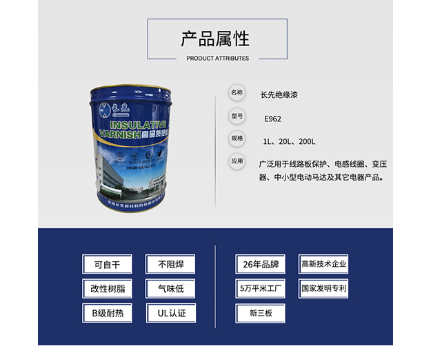 長先(xian) E962絕緣漆爲改(gǎi)性醇酸樹脂(zhī)絕緣漆,可自(zi)幹,不阻焊,氣(qi)味低🈲,通過UL認(rèn)證産品(E335405),耐熱(re)等級:B級(130℃)。該絕(jué)緣漆/凡立水(shuǐ)廣泛🌈用于線(xiàn)路闆保護、電(diàn)感線圈、變壓(yā)器、中小型電(dian)動馬達及其(qi)它電器産☔品(pin)。